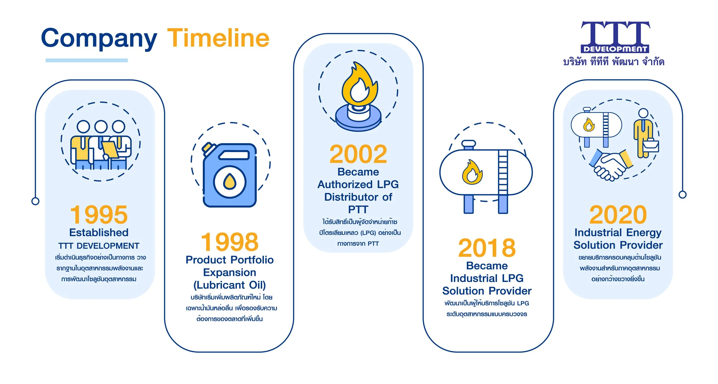Proved to be ethically-lead company, TTT Development has been trusted and supported continuously from and later, granted permission to expand product portfolio bearing PTT brand and such becoming a total energy solution provider under direct suspension supervision of PTT.
